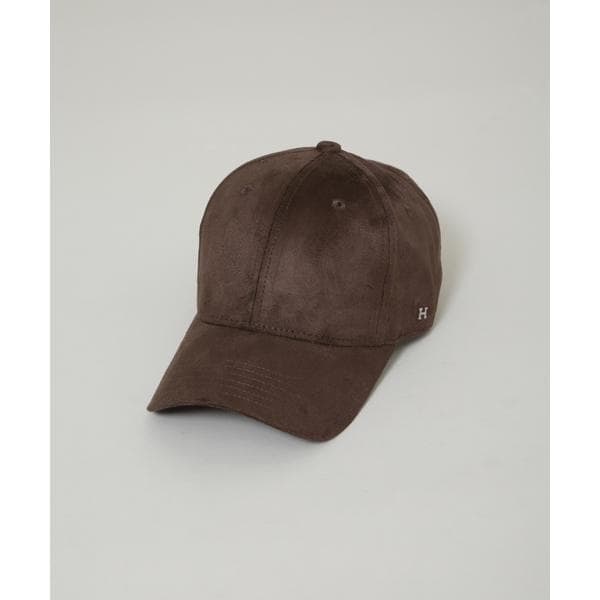 ペナント刺繍を施したフェイクスエードキャップ。キャップボディと同系色のペナントがアクセントを加えるアイテム。