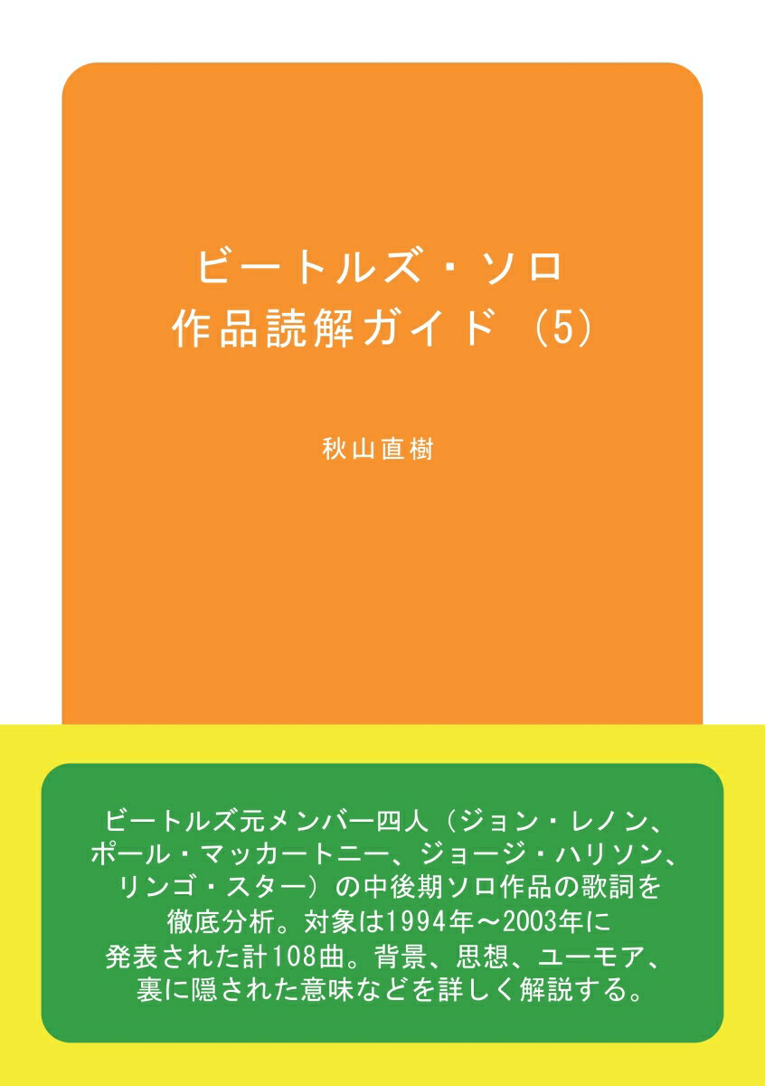 ビートルズ元メンバー四人(ジョン・レノン、ポール・マッカートニー、ジョージ・ハリソン、リンゴ・スター)の中後期ソロ作品の歌詞を徹底分析。対象は1994年〜2003年に発表された計108曲。背景、思想、ユーモア、裏に隠された意味などを詳しく解説する。主な解説対象曲: Young Boy、Oobu Joobu Theme Song、The World Tonight、Flaming Pie、Beautiful Night、Whole Life、Vertical Man、King Of Broken Hearts、La De Da、Serve Yourself、Life Begins At 40, The Rishi Kesh Song,Mucho Mungo、Run Devil Run、I Wanna Be Santa Claus、From A Lover To A Friend、Freedom、Driving Rain、Vanilla Sky、Any Road、Run So Far、Brainwashed、Never Without You、A Love For You