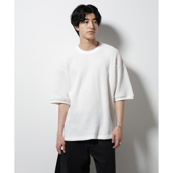 単色で統一したビッグTシャツ。ワッフルの素材感が程よい抜け感を演出する1着です。