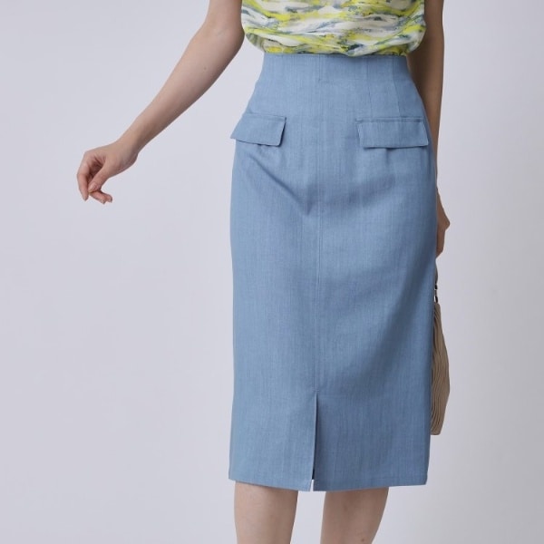 ソフトな風合いとドレープ性のあるデニム風ナロータイトスカート。