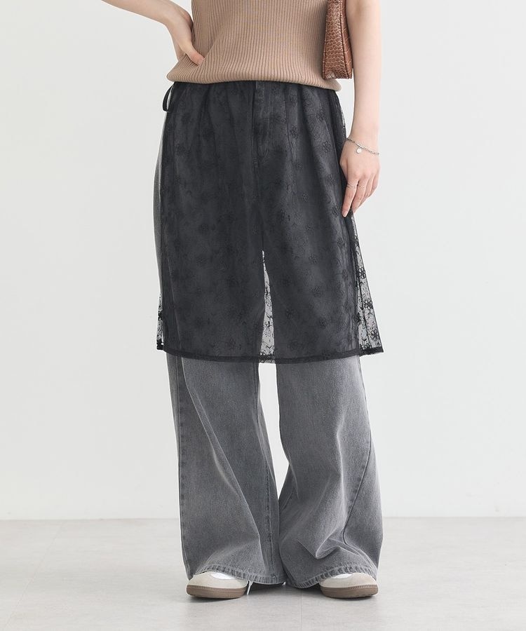 ほんのり煌めくラメ糸刺繍がアクセントのスカート。いつものスタイリングにプラスするだけでこなれ感あるレイヤードを叶えます。ウエストギャザーにリボンを加えた甘さのあるフェミニンなディテールもポイント。繊細なフラワーモチーフがスタイリングを優しい印象に仕上げてくれる今季おすすめのアイテムです。透け感[あり]