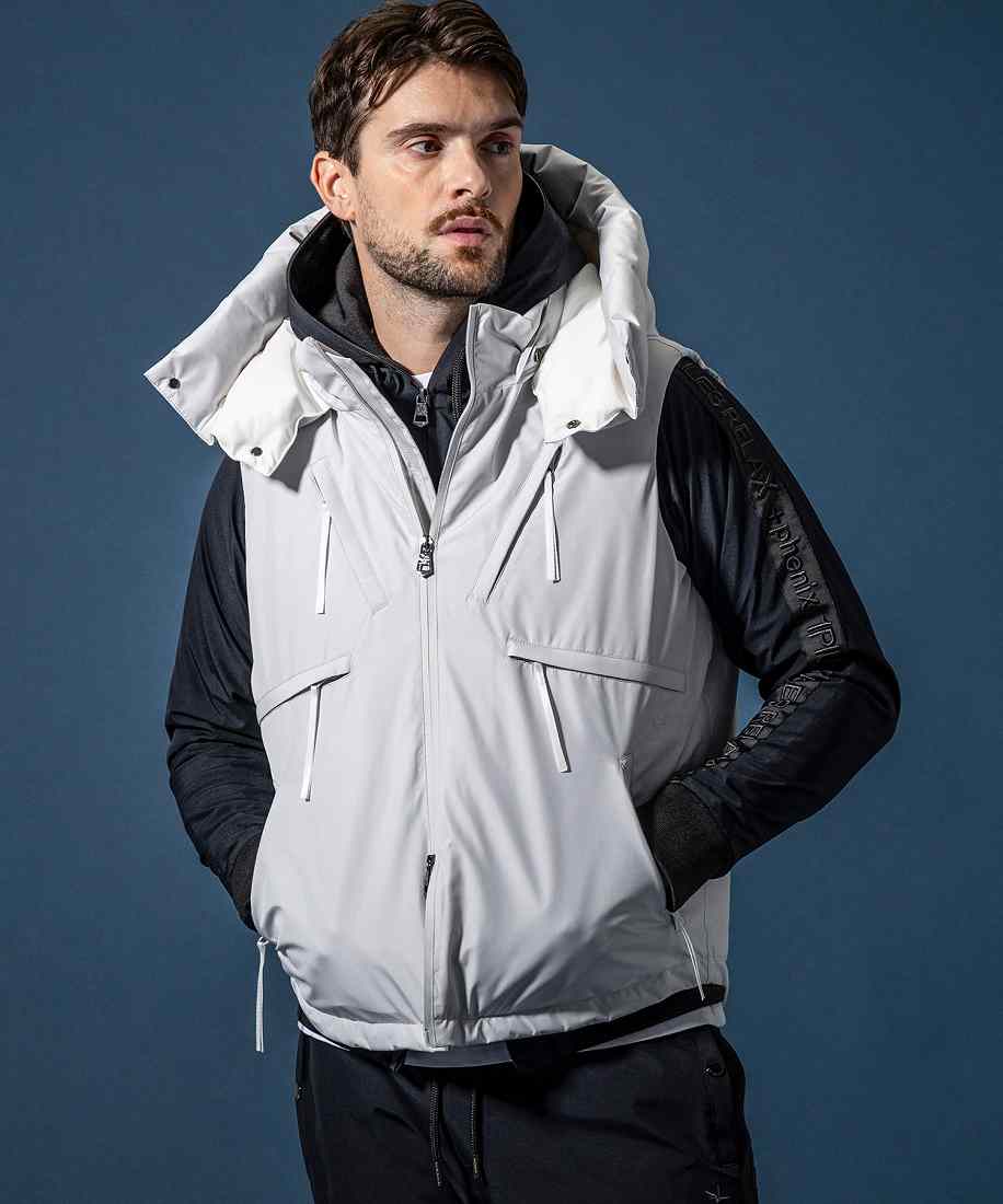 防風・透湿・撥水性に優れた〈WINDSTOPPER® PRODUCTS BY GORE-TEX LABS〉を採用したダウンベスト。