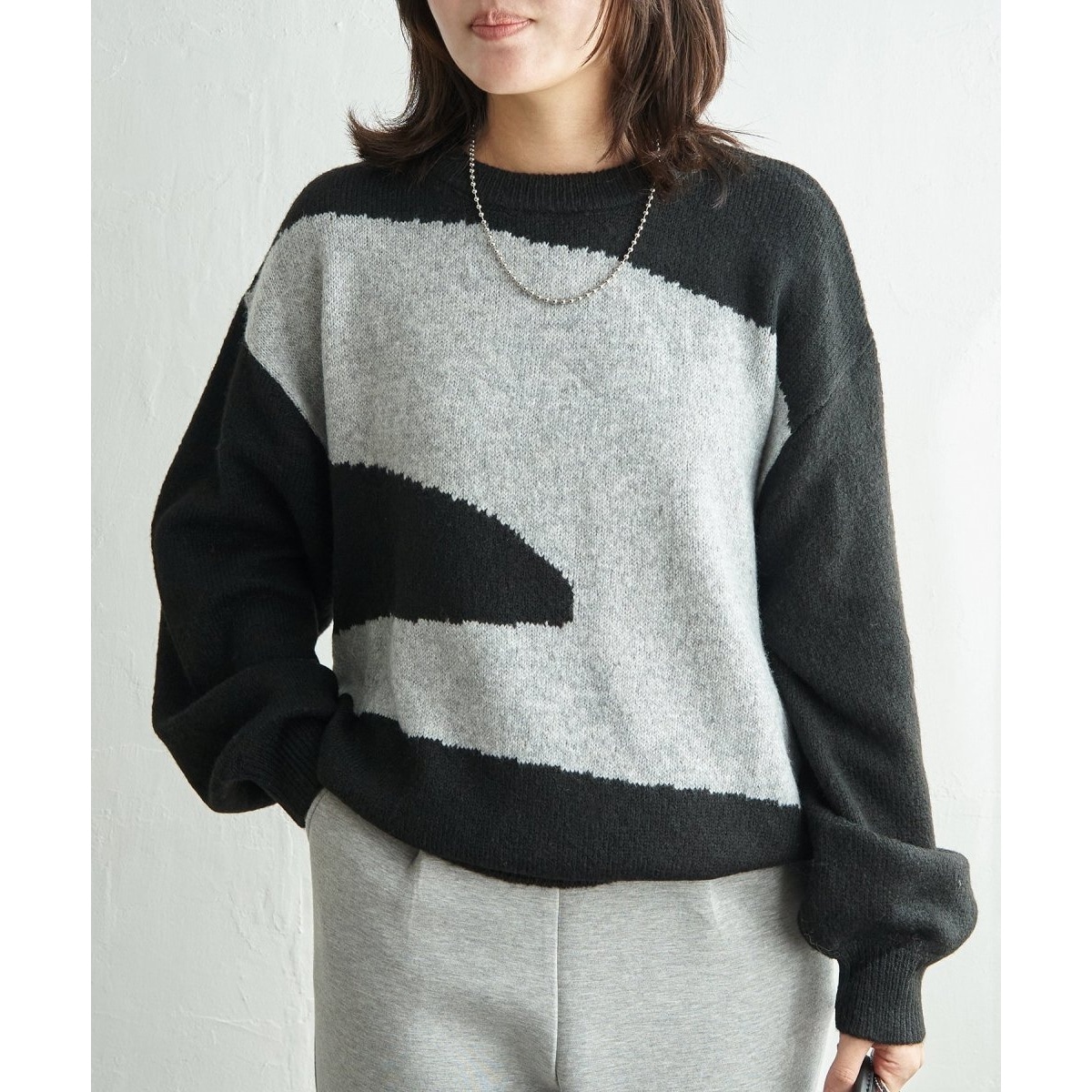 配色ニュアンス柄が目を引くジャガードプルオーバー。