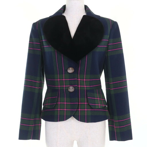 極美品 Vivienne Westwood ヴィヴィアンウエストウッド オーブ ラブフリル ハート襟 チェック ワンピース 00 フリーサイズ
