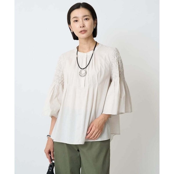 スモッキングデザインが高級感あふれる着映えブラウス
