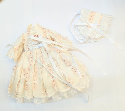 ancienne ドール衣装 MSDサイズ 花柄ドレス 白 グリーンリボン