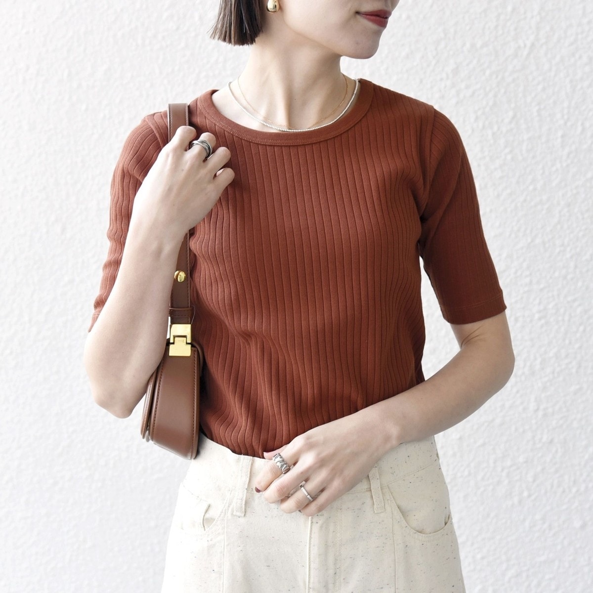 美品!SHIPS any: テレコ ハーフ スリーブ TEE 5分袖