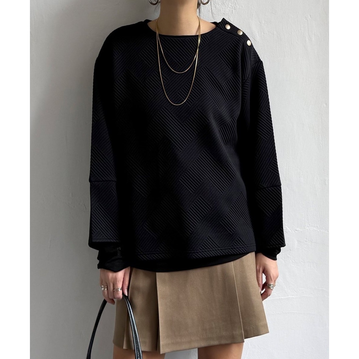 幾何学柄のふくれジャカードカットソー。