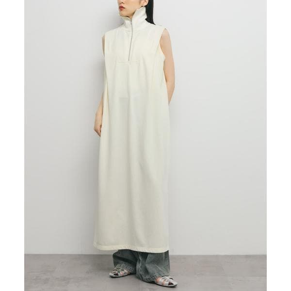 そのまま1枚着るだけでスタイリングが完成するワンピース。柔らかめの裏毛とリブ仕様、ハーフZIPデザインがポイントです。肩に入れたタックデザインは、二の腕や脇部分をホールドしてくれます。パンツをレイヤードしたコーデもおすすめです。