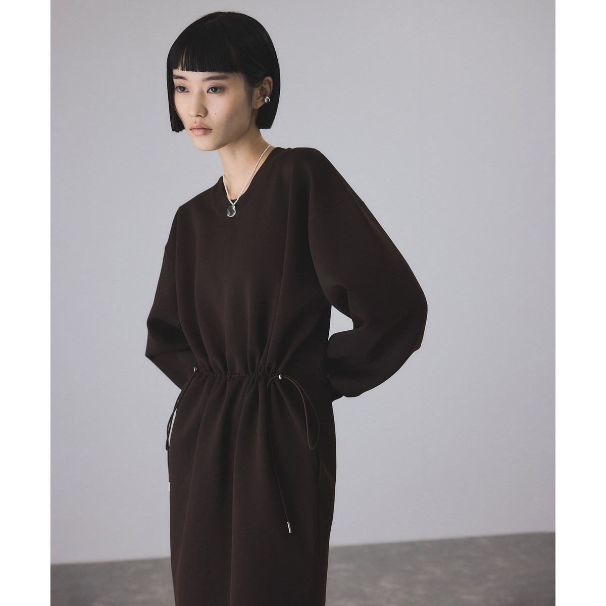 ウエストがドロスト仕様なので、すとんとしたシルエットを楽しんだり、ぎゅっと絞ってメリハリのあるバランスにしたりと、その日の気分や足元のバランスに合わせて、好みのギャザー分量に変化を加えられるデザインも魅力。
