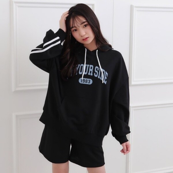 ポンポネットJr.重ね着風袖ライン入りパーカー&ショートパンツセット