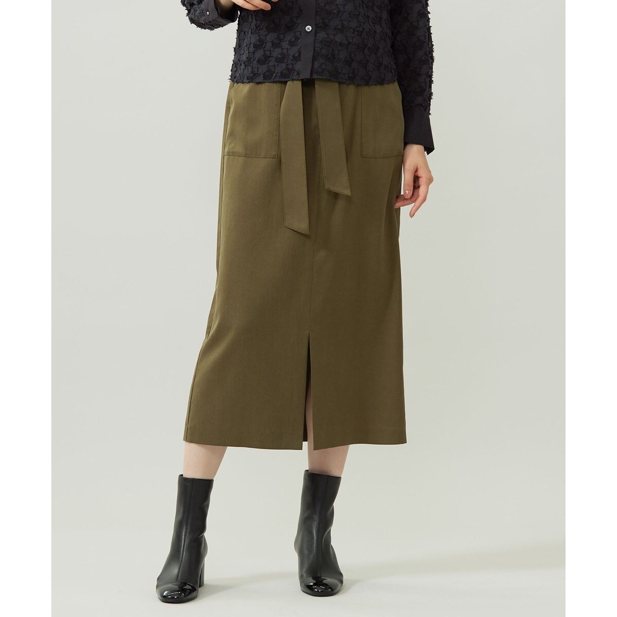 程よいカジュアル感を楽しめるベイカーディテールスカート■デザインベイカーディテールのカジュアルなストレートスカートです。脇と後ろはギャザーが入っているので程よいカジュアル感で、体のラインをカバーしてくれるのも嬉しいポイントになっています。前ウエストはベルトの切り替えがなく、ポケットを載せてたたいているので、すっきりとした見え感です。共布ベルト付きでコーディネートのアクセントにしても着て頂けます。■素材タテ糸に再生繊維(セルロース)を使用しています。ヨコ糸には再生繊維(セルロース)と綿の混紡糸を使用することで、落ち感が出過ぎずナチュラルなタッチを表現しています。仕上げのバイオ加工により、再生繊維(セルロース)の柔らかさを引き出している素材です。■同素材アイテムコクーンシルエットパンツ(PRWMGW0316)
