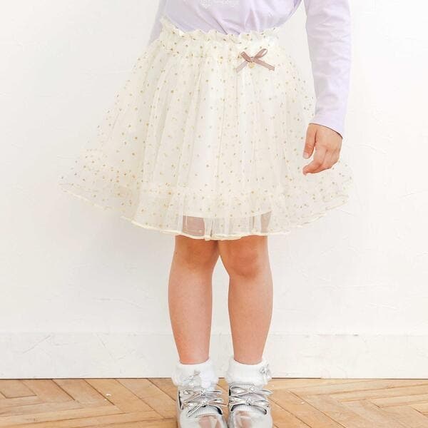 キラキラのラメを使用したドット柄がパッと目を引く女の子用スカート。