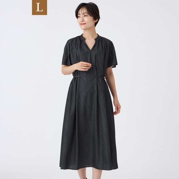 【L】【吸水速乾】【マシンウォッシャブル】ジオメトリックゼブラプリントワンピース