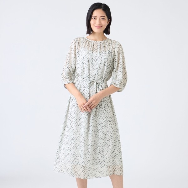 【ウォッシャブル】ドットクレープワンピース