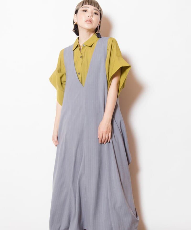 【apretro】Vネックロングジャンパースカー 3WAY