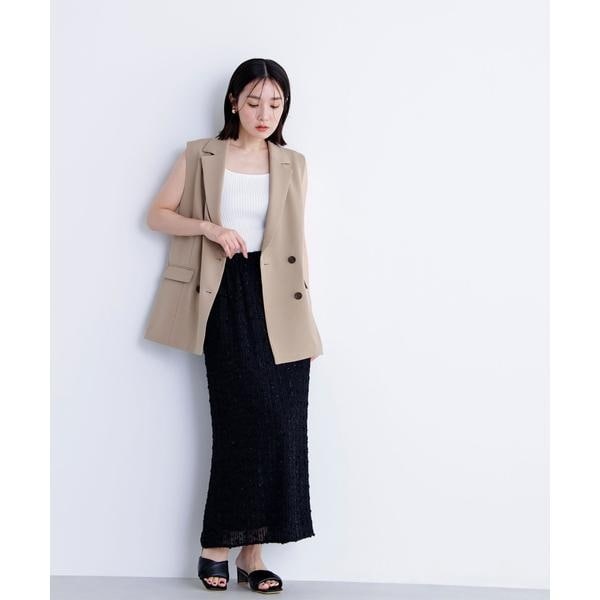 キラキラとした刺しゅうをあしらったナロースカート。シンプルなナローシルエットでも華やかな印象でスタイリングのポイントに。柔らかい裏地を合わせ、ウエストはゴム仕様でリラックスしたはき心地です。コーディネートに合わせやすいナローシルエットは、ベーシックなトップスと合わせたり、Tシャツと合わせた夏のカジュアルスタイルにもおすすめです。<素材>薄手の生地に刺しゅうを施した華奢で華やかな素材を使用しています。<詳細>仕様・開閉なし裏地・あり透け感・なし / 光沢・ややあり / 伸縮性・なし生地の厚さ・薄手※モデルの着用画像の場合、光の当たり具合により、実際の色味と異なって見えることがございます。色味は、商品単体の画像をご参照ください。