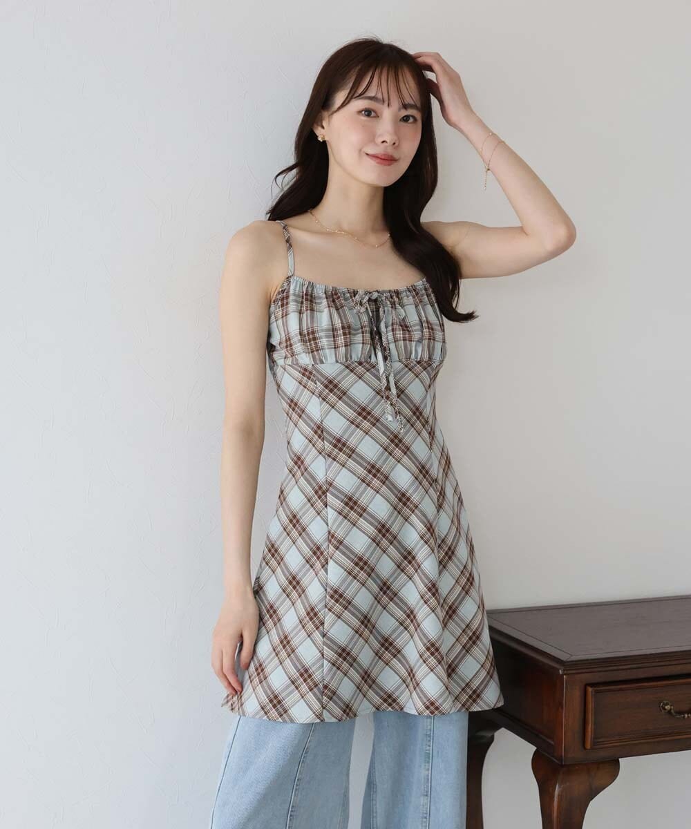 チェック柄が目を惹くナチュラルガーリーなミニワンピース
