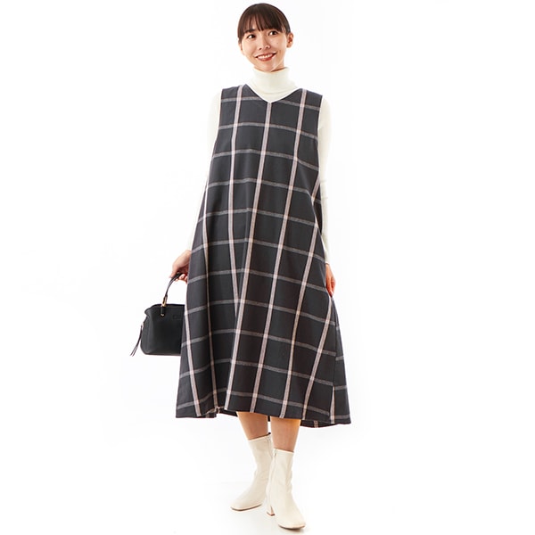 index チェックジャンスカワンピース【洗濯機洗い可/イージーアイロン】