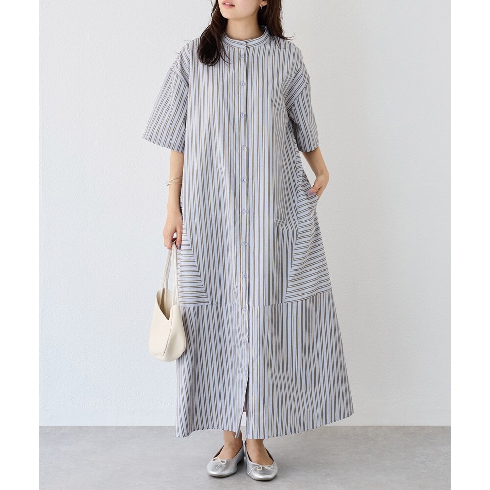 ワンピースドレス 綿・コットン素材 / カットソー素材 / ポリエステル素材 / ストライプ / その他柄 / ロング・マキシ丈 / 半袖 / LL・13号以上あり / 洗える / ライフスタイル / Aライン(シルエット) / その他(シルエット) / フレアスカート / ロング・マキシ丈