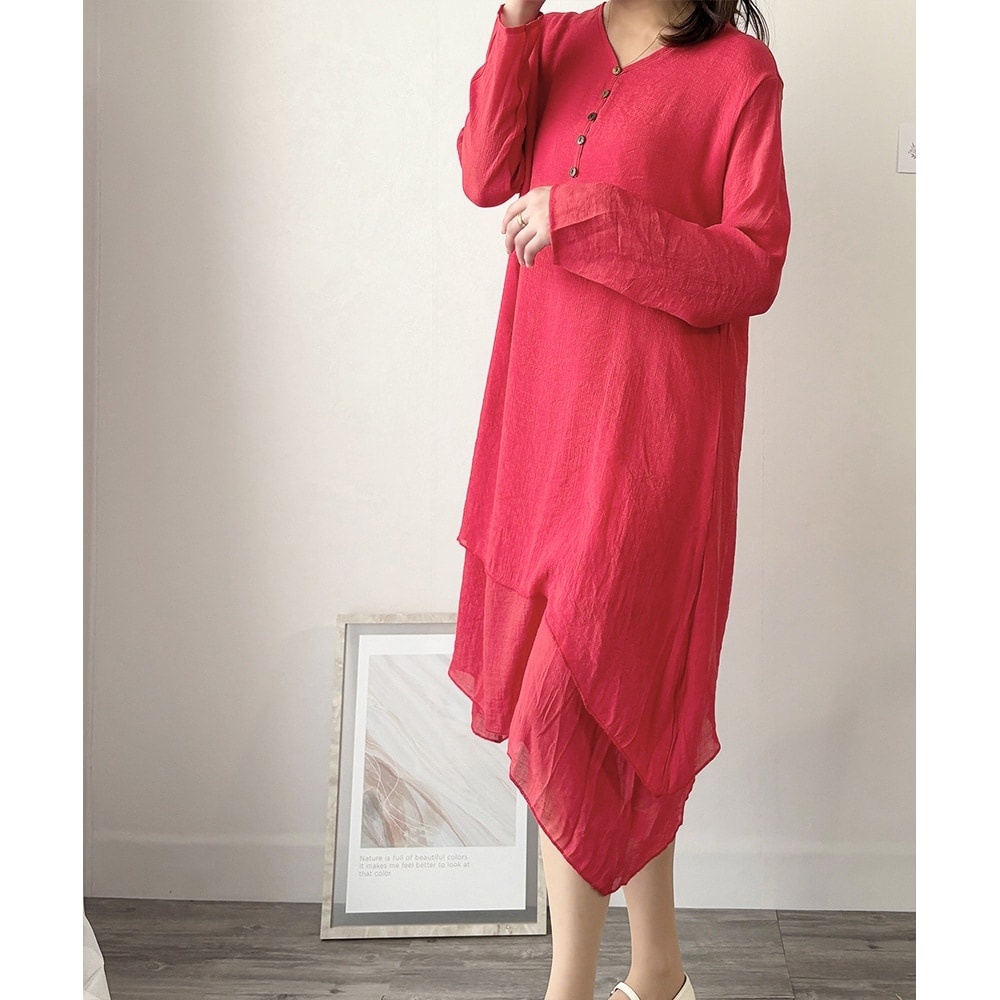 ②新品★無地★薄めコットン素材★ゆったりサイズ★シンプル★Aライン★長袖マキシ丈ワンピース