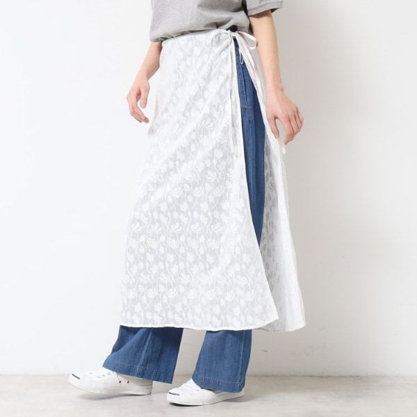 刺繍柄の入った生地を使用したインドレーススカート。
