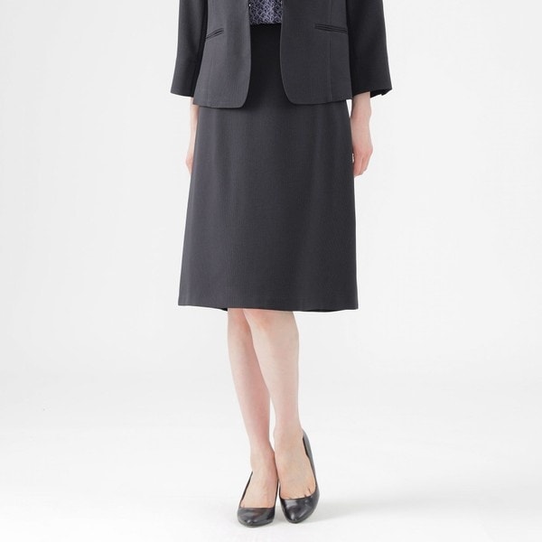 やや台形シルエットのシンプルなスカートです。トップスをインにした時に、ウエストがスッキリ見えるデザインです。後ろウエストはゴム仕様なので快適な着心地です。同素材ノーカラージャケット(U1E08550)テーラードジャケット(U1E07550)とのセットアップがおすすめです。