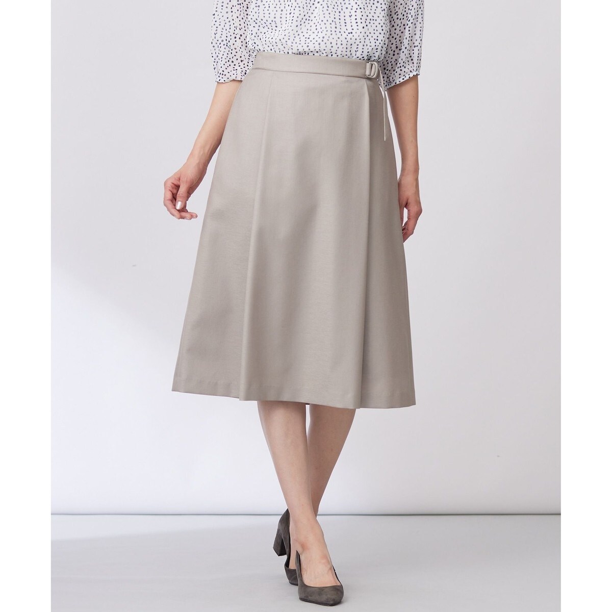 ベルトデザインがシンプルなコーディネートのアクセントに!軽い着心地が魅力のAラインシルエットのスカート