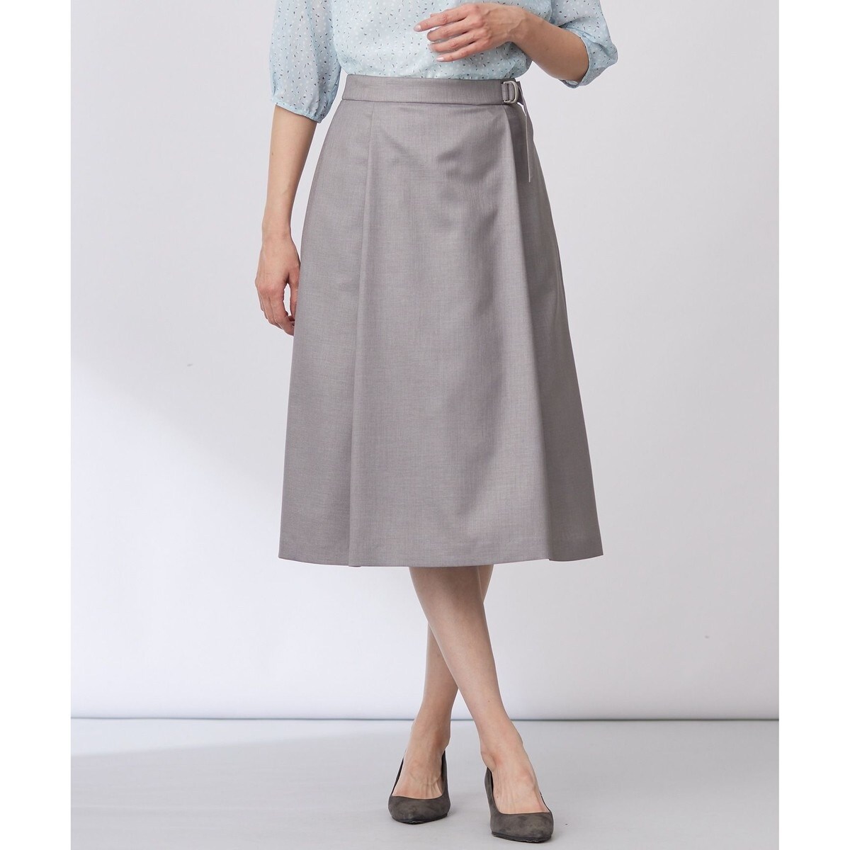 ベルトデザインがシンプルなコーディネートのアクセントに!軽い着心地が魅力のAラインシルエットのスカート