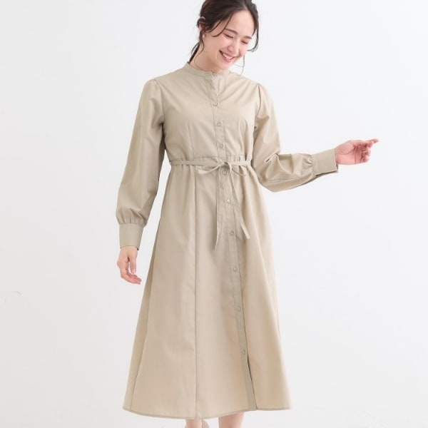 長袖シャツワンピース 緑 カジュアル 重ね着 秋冬 キレイめ グリーン