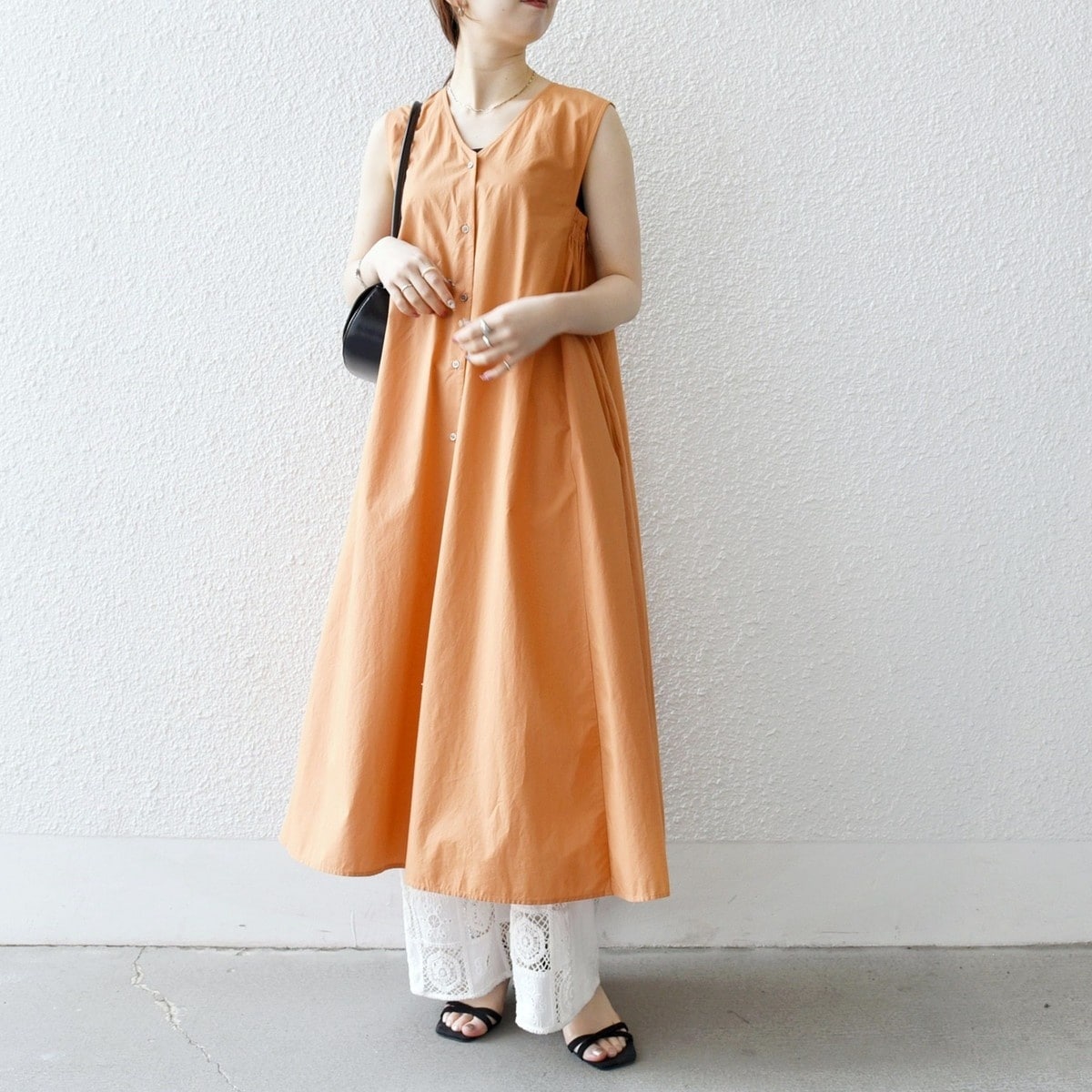 動くたびに揺れるフレア感が、女性らしさを引き立てる一枚です。