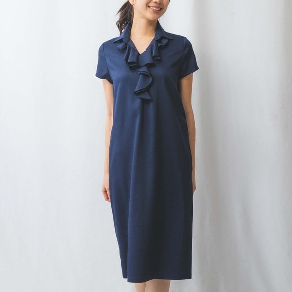 【NARACAMICIE】ツイル襟付きフリル長袖シャツ