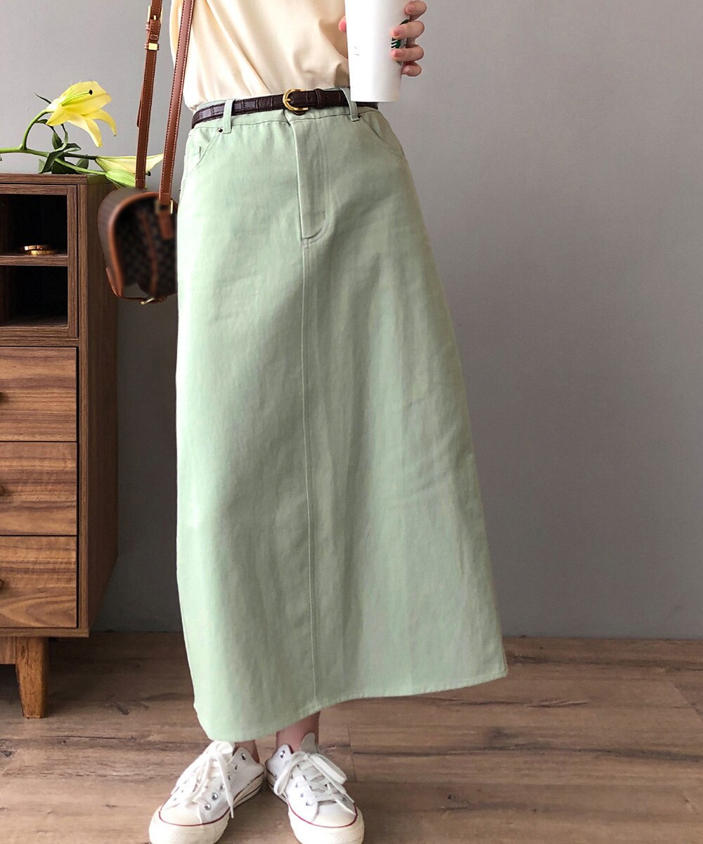 キレイめカジュアルにも、甘めスタイリングのスパイスにも使えるスリット入りデニムスカート