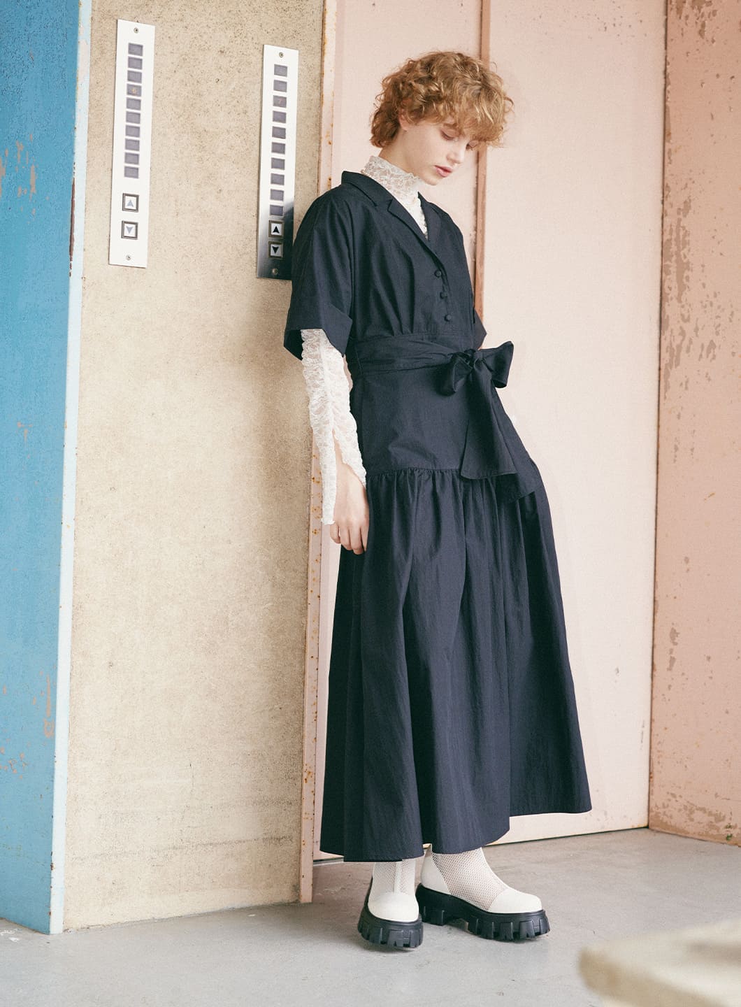 ウエストリボンシャツワンピース