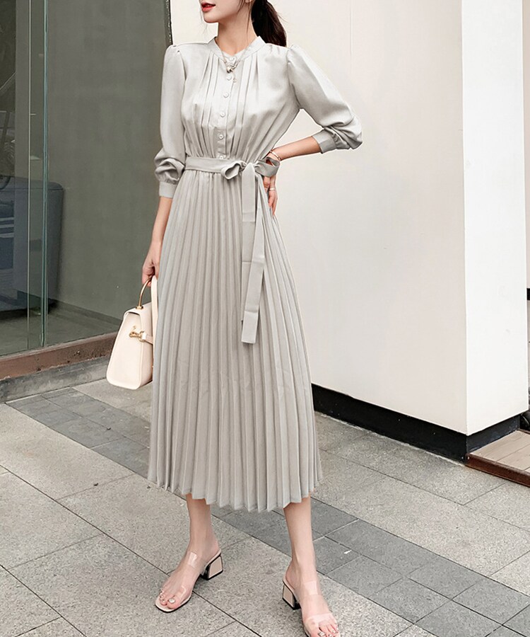 プリーツが歩く度優雅に揺れるAラインワンピース。