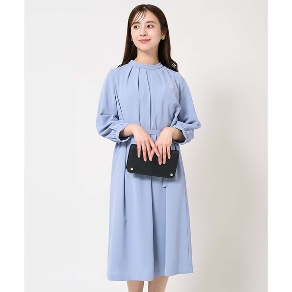 シンプルな無地のワンピースは汎用性抜群。ジャケット合わせでお仕事などのONシーンから、ちょっとしたお食事会、お出かけなどまで対応。シーンを選ばない定番のブラックと、華やかでいて大人上品な印象のライトブルーと2色展開です。