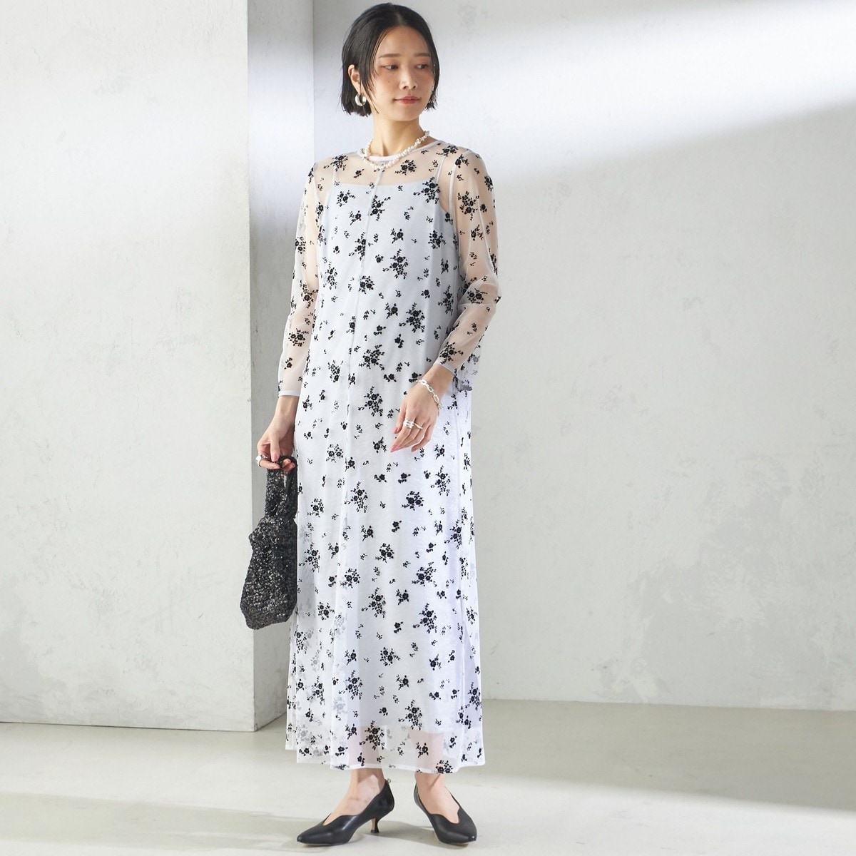 〈結婚式・パーティ〉kaene:エンブロイダリー ミックス ワンピース