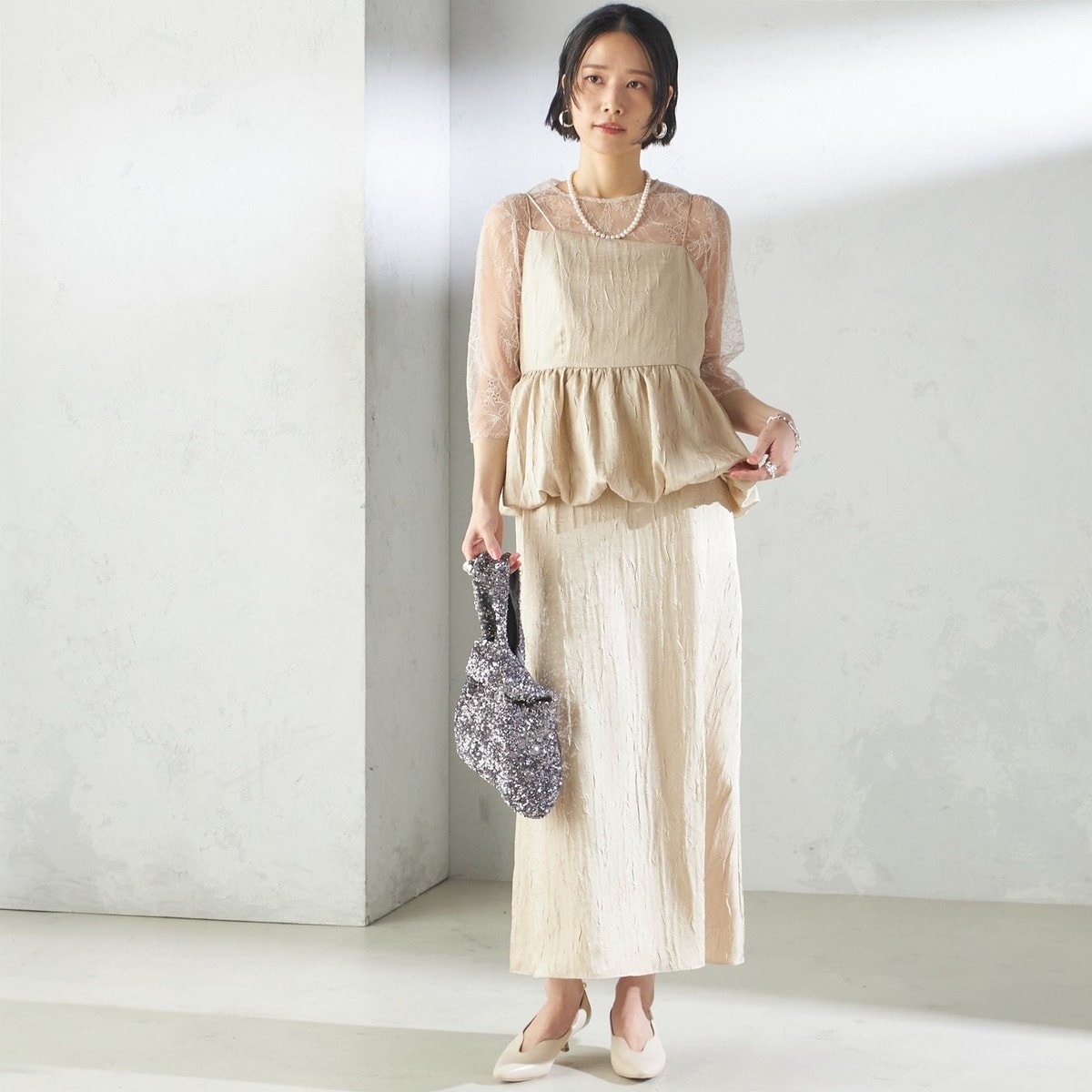 【kaene】スパンコール×総レースドレス/結婚式/パーティー/お呼ばれ