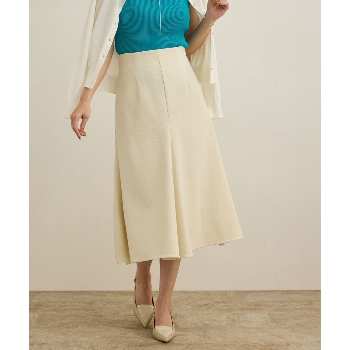 柔らかいニットプリーツロングスカート ベージュ