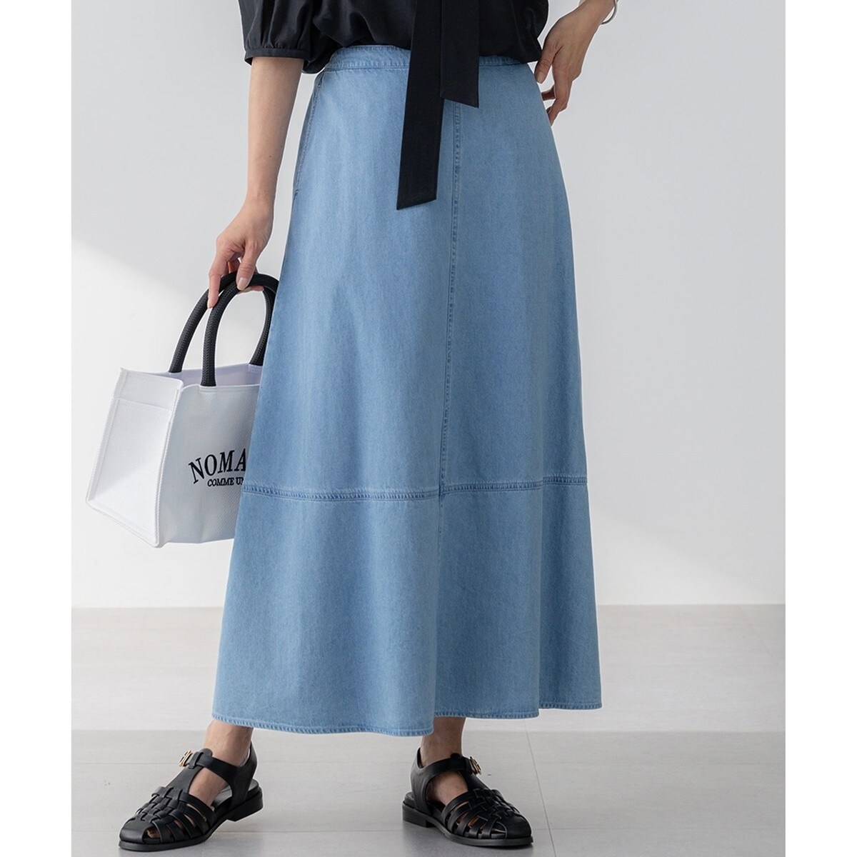 女性らしいナローシルエットのデニムスカートです。フレアの分量はあえて控えめにすることで、上品なシルエットにこだわりました。軽くて柔らかい素材ならではの広がりや落ち感が女性らしく、カジュアルなニットやカットソーとでもきれいめスタイリングを楽しめます。腰回りもゆとりを持たせた作りなので身体のラインを拾わず、裾に向かってストンと落ちるデザインなのも嬉しいポイント◎。シーズンレスに着回しができる汎用性の高い1枚です。カラーは、爽やかなライトインディゴ(#071)と、こなれ感のあるインディゴ(#072)の2色展開です。