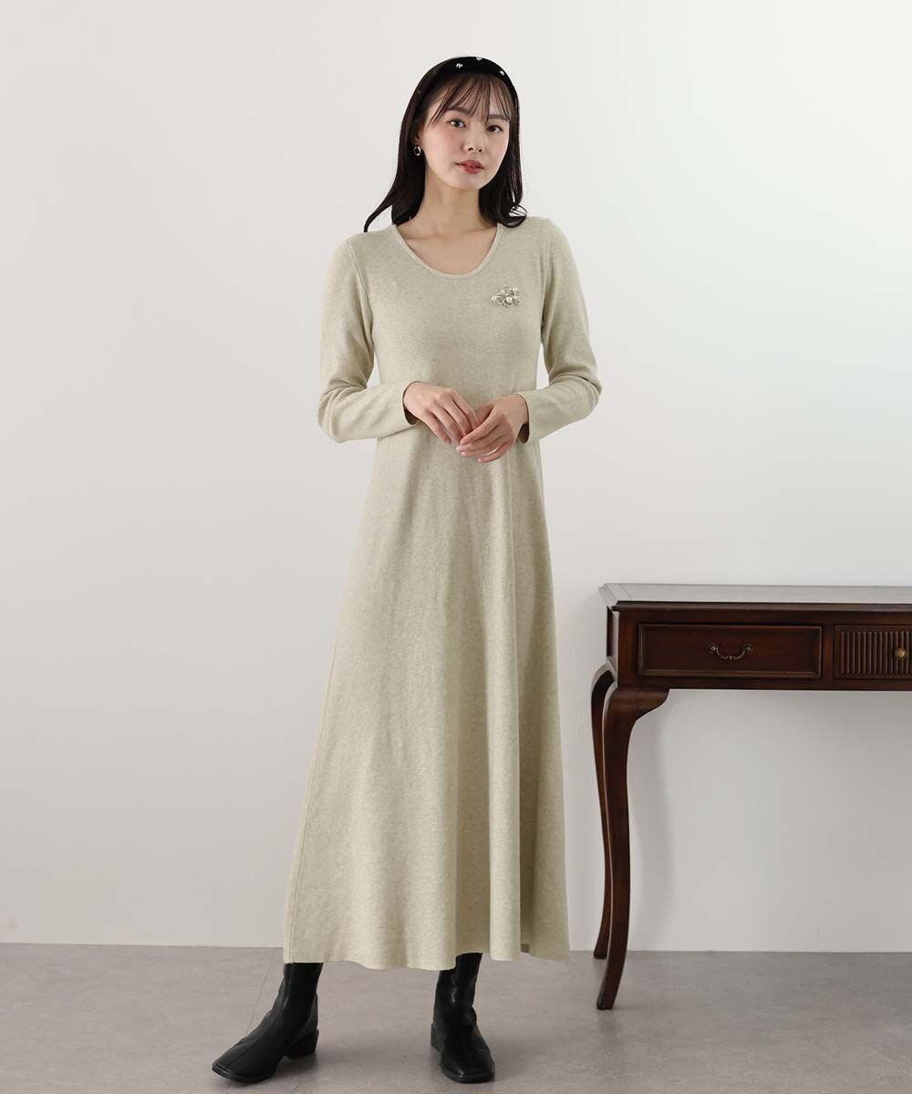 ストンと落ちるシルエットが大人っぽいベーシックなロングニットワンピース。