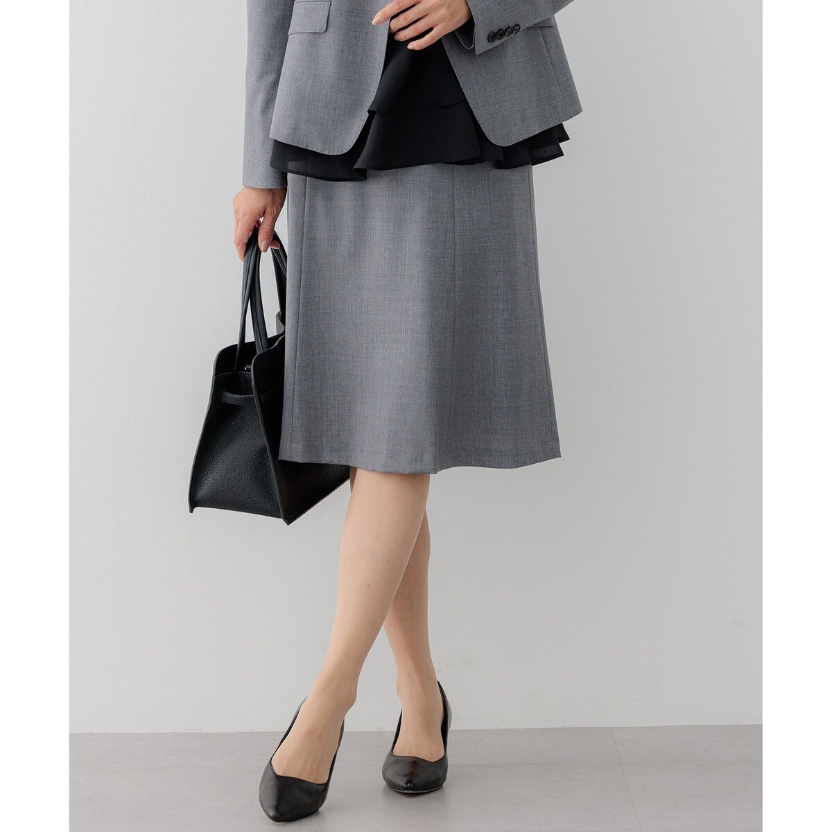 上品な艶感が素材の上質さを際立たせるスーツスカート