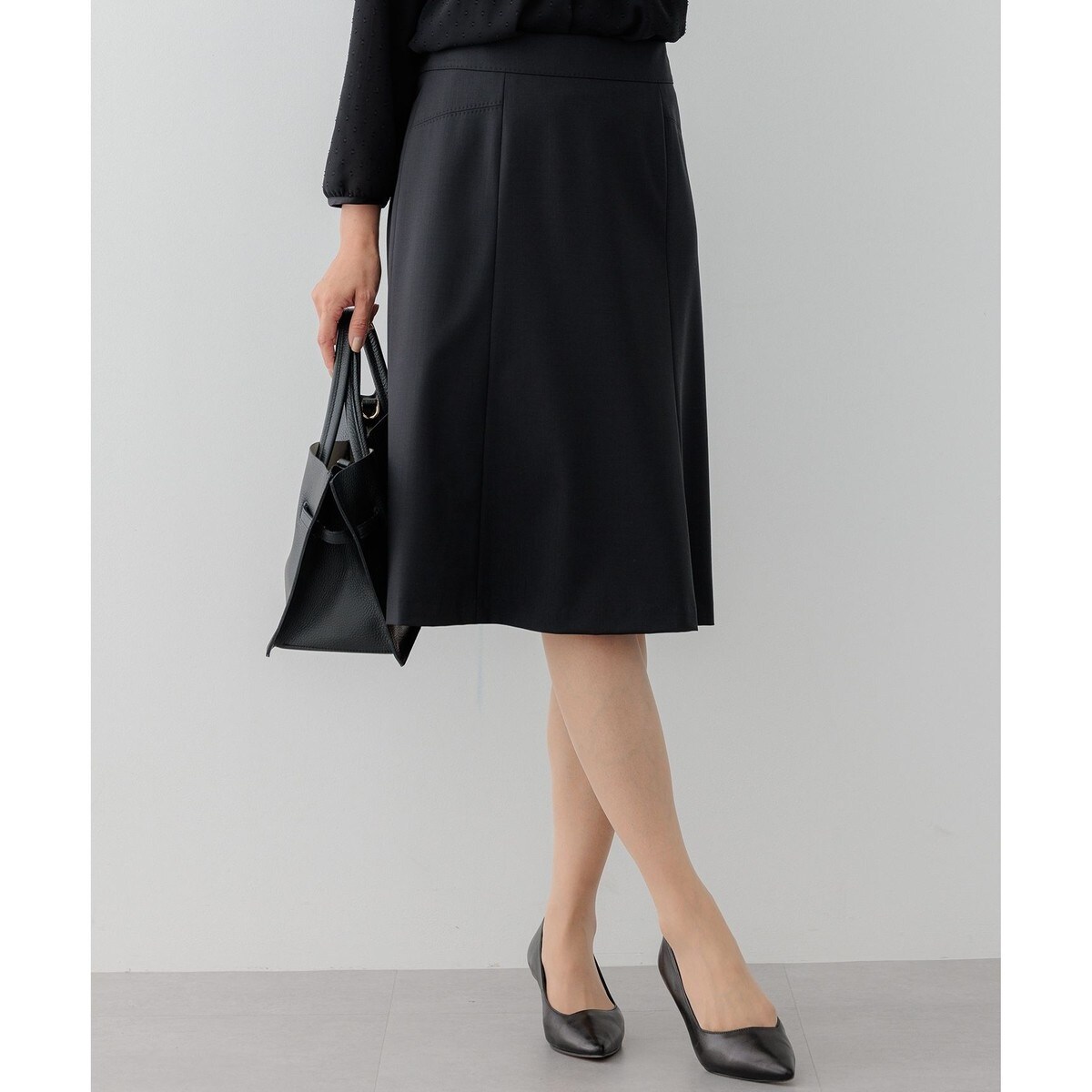 上品な艶感が素材の上質さを際立たせるスーツスカート