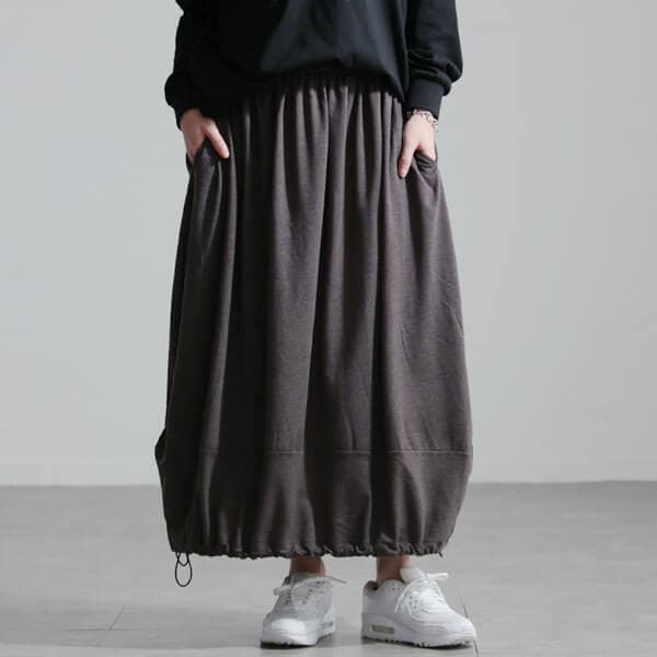 寒い季節の強い味方!穿くだけで+5.7℃暖か裏起毛裾ドロストバルーンスカートの登場です。トレンドのバルーンシルエットでヒップ&太ももをお洒落にカバー◎裾にドローコードが付いているのでコーデに合わせてシルエットを自在にアレンジが可能です♪ウエストゴム&内側に調節紐付きで穿き心地ノンストレスなのも嬉しいポイント!