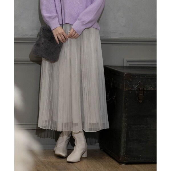 ・チュール素材にプリーツ加工を施し、裏地を重ねた2素材の美しい重なりが魅力的なプリーツスカート。