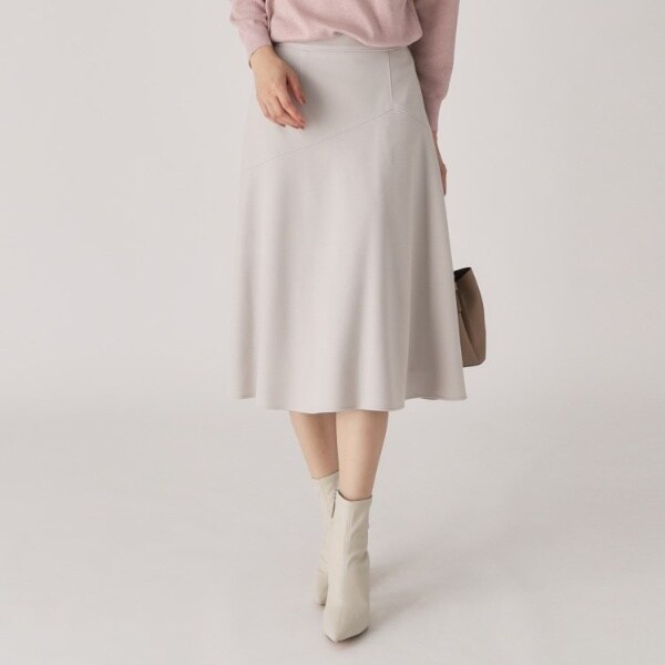 上品なシルエットなのでブラウスやニットでキレイめな通勤スタイルにおすすめ。トップスはウエストインするとスタイルアップも叶います。