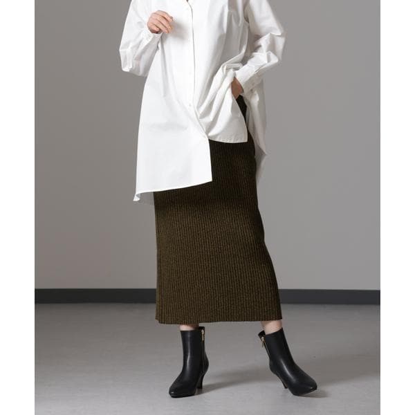 ・大人なシルエットを演出してくれるリブニットナロースカート
