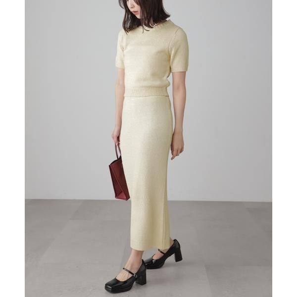 小さなカールが入ったブークレニット素材のセットアップ。ブラックは2色使いで豊かに仕上げました。トップスは、トレンドライクコンパクトなクロップド丈でスタイルアップもするサイジング。スカートはタイトなシルエットながらも程よい肉感の素材でラインを拾いすぎません。ウエストはゴム仕様で優しい着心地もうれしい。セットでワンピのように着るのはもちろん、それぞれ単品使いが可能で、スタイリングの幅を広げてくれるのもうれしいポイント。※モデルの着用画像の場合、光の当たり具合により、実際の色味と異なって見えることがございます。色味は、商品単体の画像をご参照ください。