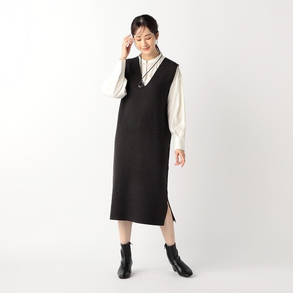 ハイゲージのヘリンボーンジャガードニットワンピースです。