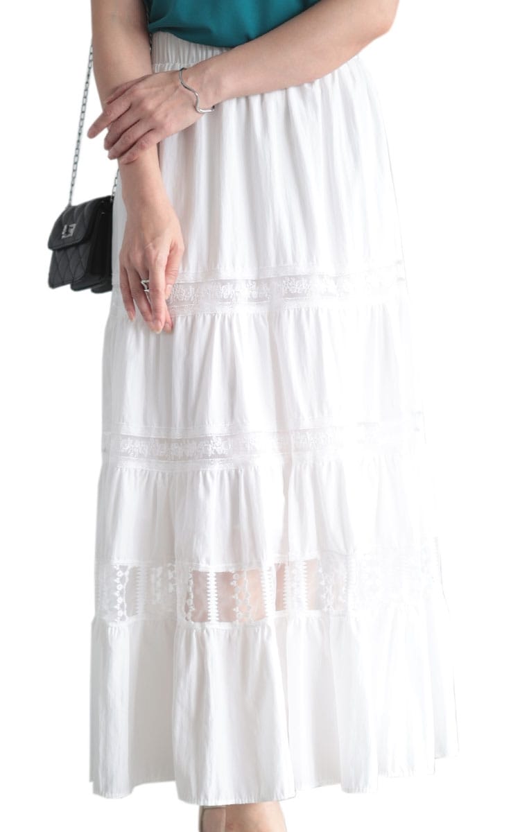 シアーギンガムフリルサス付きスカート